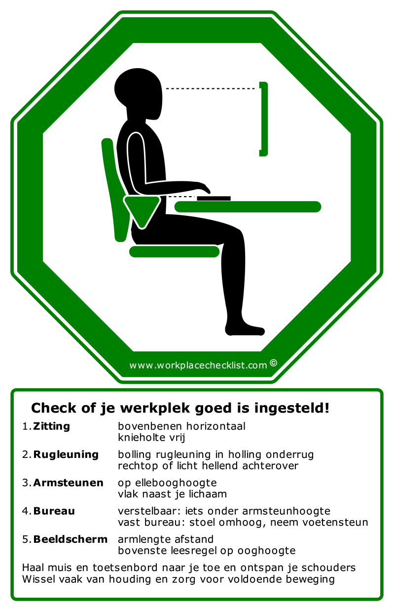 De werkplek checklist is ontwikkeld op basis van de arbo-wetgeving omtrent beeldschermwerk, aangevuld met inzichten van ergonomie expert Ilya den Dulk-Slingerland. Zij heeft inmiddels ruim 2000 werkplekonderzoeken uitgevoerd door heel Europa en is hiermee zonder twijfel een van de meest ervaren ergonomen op dit gebied.